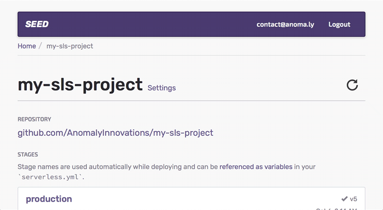 Seed is a fully-configured code pipeline for building and deploying Serverless apps on AWS. Simply add your Git repository and IAM credentials and your entire team can `git push` to deploy updates to your Serverless app.
