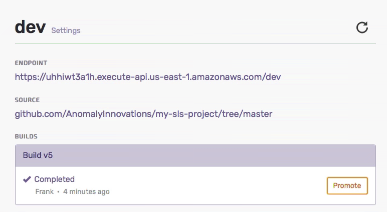 Create a new stage by pointing to a branch in your repository. Each stage automatically gets it’s own endpoint and you can create as many as you like. Read more on working with stages.